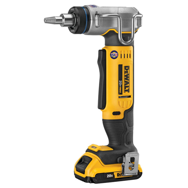 Expand PEX Type-A tubing from 3/8-inch to 1-inch with this 20V MAX* Cordless 1-inch PEX Expander, the fastest PEX Expander on the market. It's proudly made in the USA with global materials. An automatic rotating head helps to ensure even expansion. The bright onboard LED work light and full-trigger actuation make it an excellent tool in dimly lit, tight spaces. Carry this tool conveniently around the jobsite with a dual-sided hang hook and belt hook. Rubber overmold on the handle provides an ergonomic grip to keep you comfortable all day. DEWALT® 20 volt tools use DEWALT® PEX Heads, and are compatible with leading competitive PEX heads.