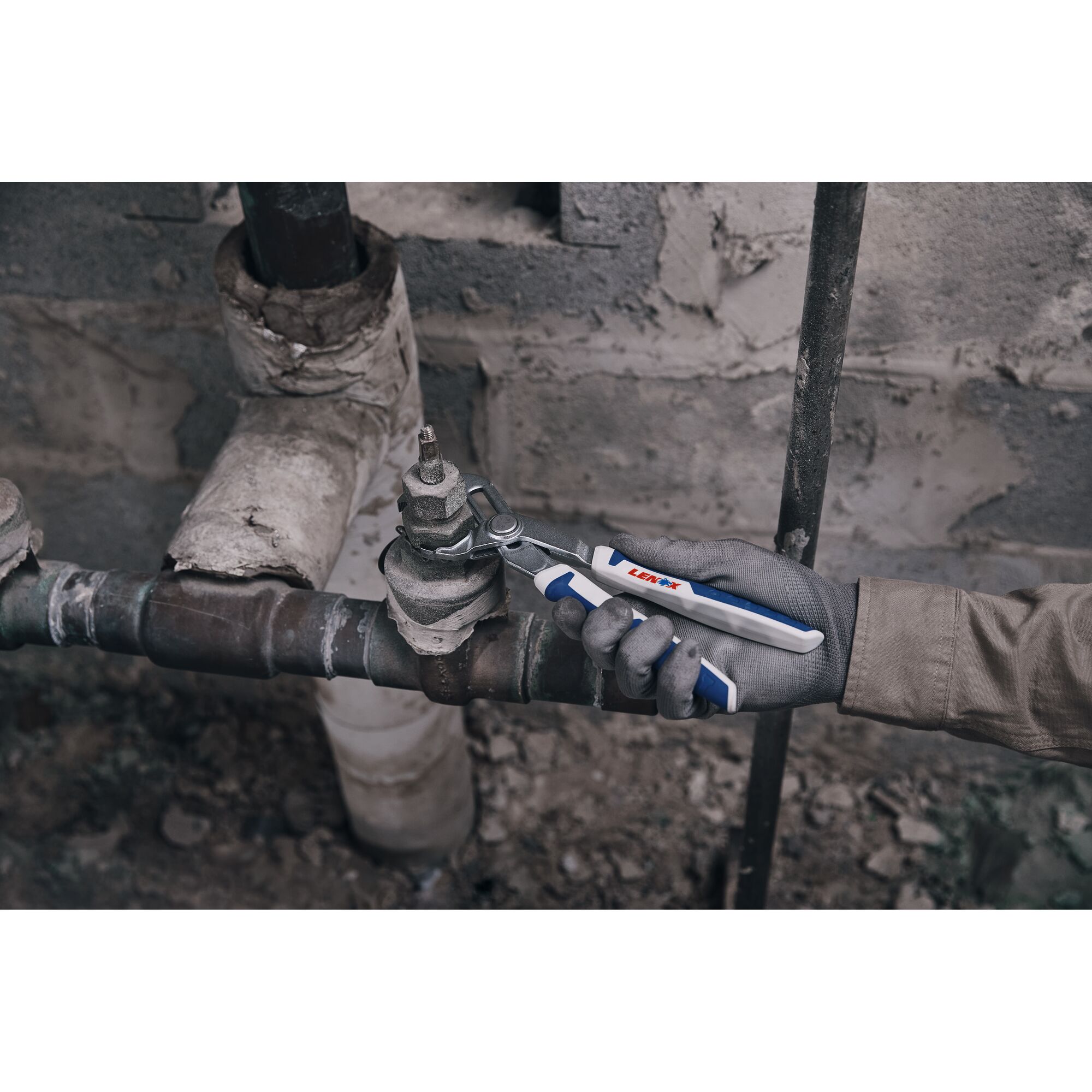 The LENOX® Quick-Adjust Pliers are 2X faster to adjust* vs traditional groove joint pliers with the patented quick adjust mechanism. The jaws can be opened utilizing the press and slide mechanism and adjusted closed with the simple push of the handle. Chrome plating helps resist rust or corrosion and its bi-material anti-pinch grips provide comfort. The slim profile design also fits more easily in tighter spaces.